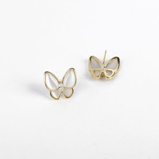 S925 silver needle earrings mother shell European and American niche design Internet celebrity super fairy temperament versatile earrings shell butterfly stud earrings